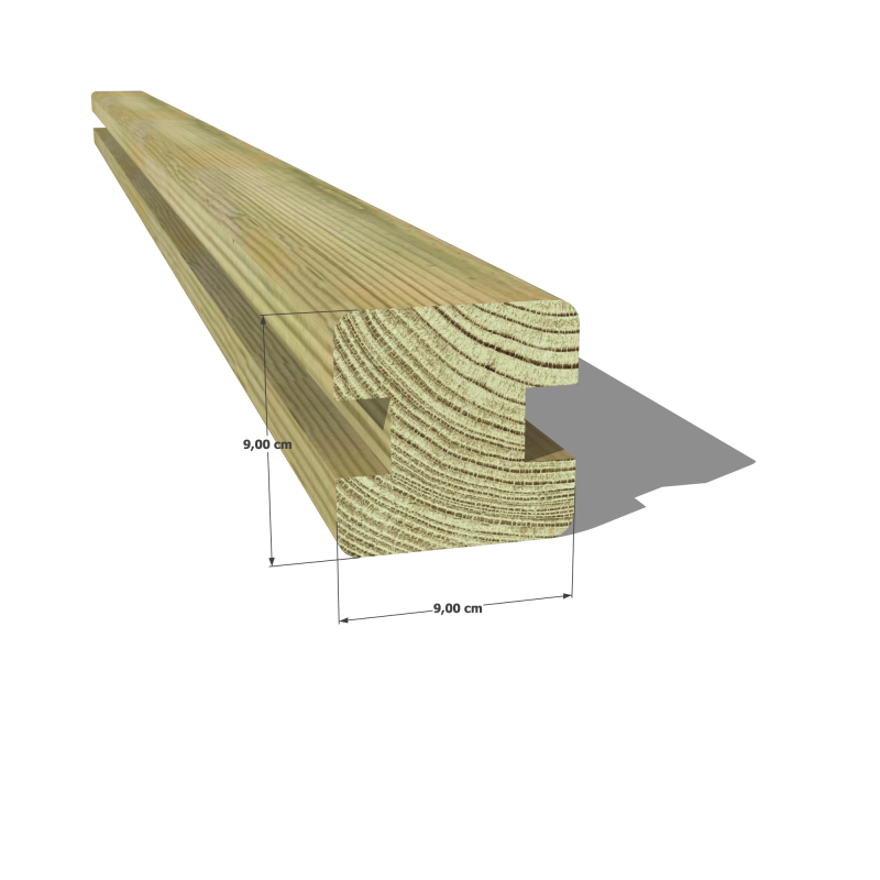 Optez pour notre poteau en pin sylvestre profil H de 90×90 mm, conçu pour les structures nécessitant un emboîtement précis.